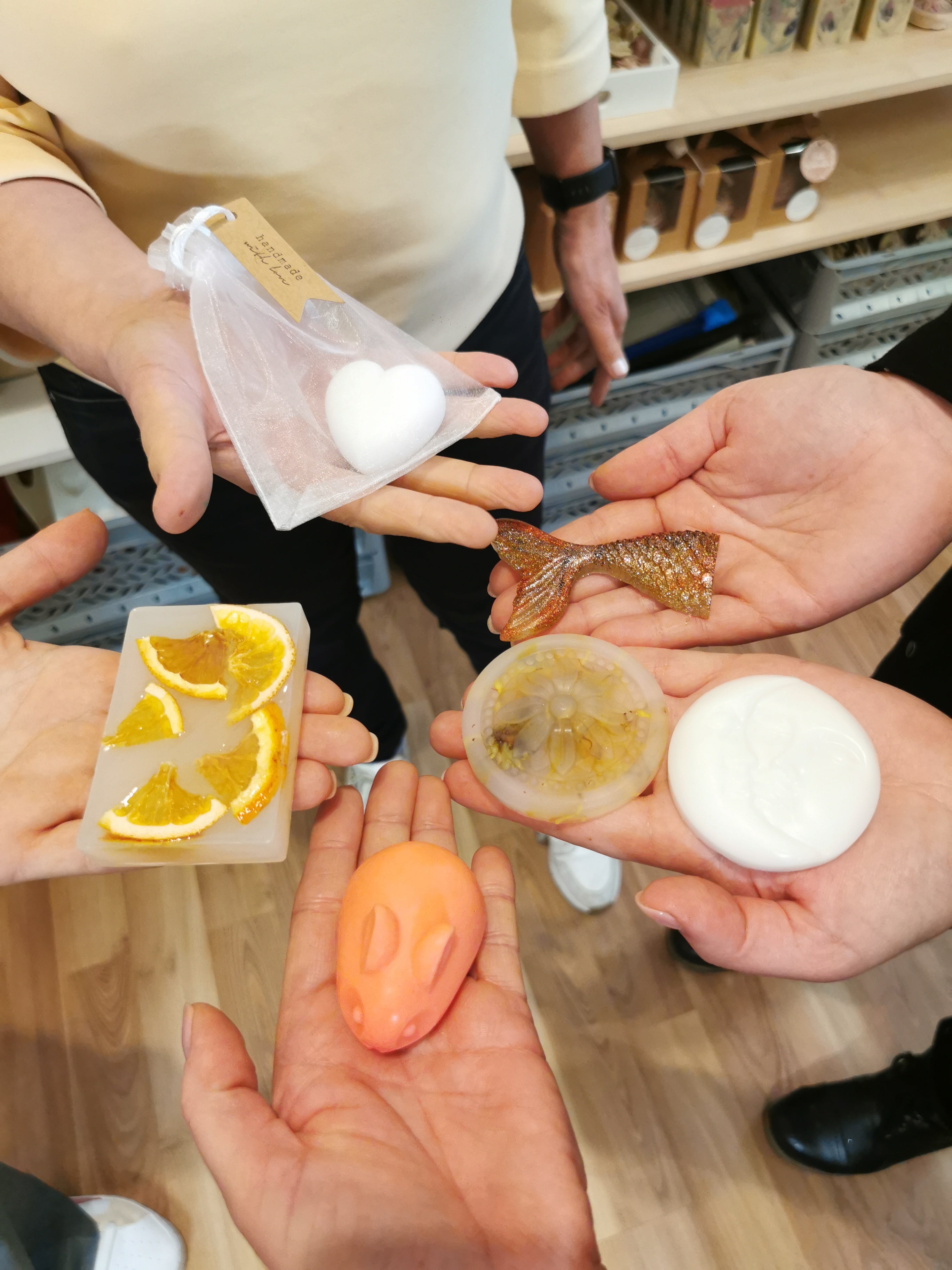Mit verschiedenen Farben, Glitzer, Duftölen und Blumen gießen wir gemeinsam 4 bis 5 Seifenstücke. Am Ende werden die Seifen in ein Organzasäckchen oder einer Schachtel schön verpackt und können mit nach Hause genommen werden.